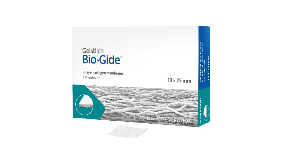 Geistlich Bio-Gide®– уникальная двухслойная коллагеновая мембрана из свиного коллагена без искусственных поперечных сшивок. Ее натуральная двухслойная структура способствует регенерации кости и обеспечивает прекрасную тканевую интеграцию за счет оптимальной длительности барьерного эффекта. Мягкие ткани заживают без образования рубцов и преимущественно без осложнений.